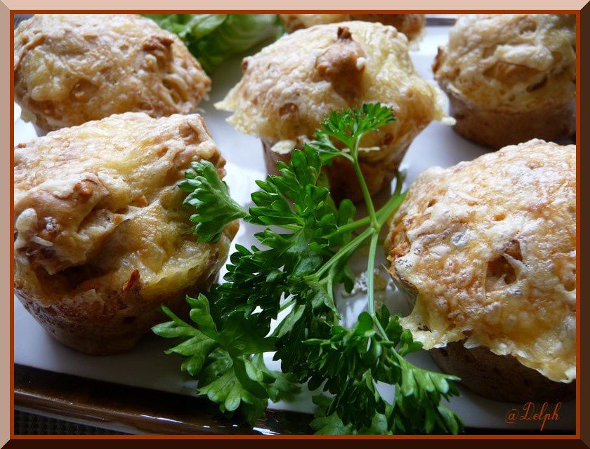 - Répartir dans 6 moules a muffins beurrés, enfoncer quelques dés de comté dans la pâte puis faire cuire 10 minutes à 180°C.