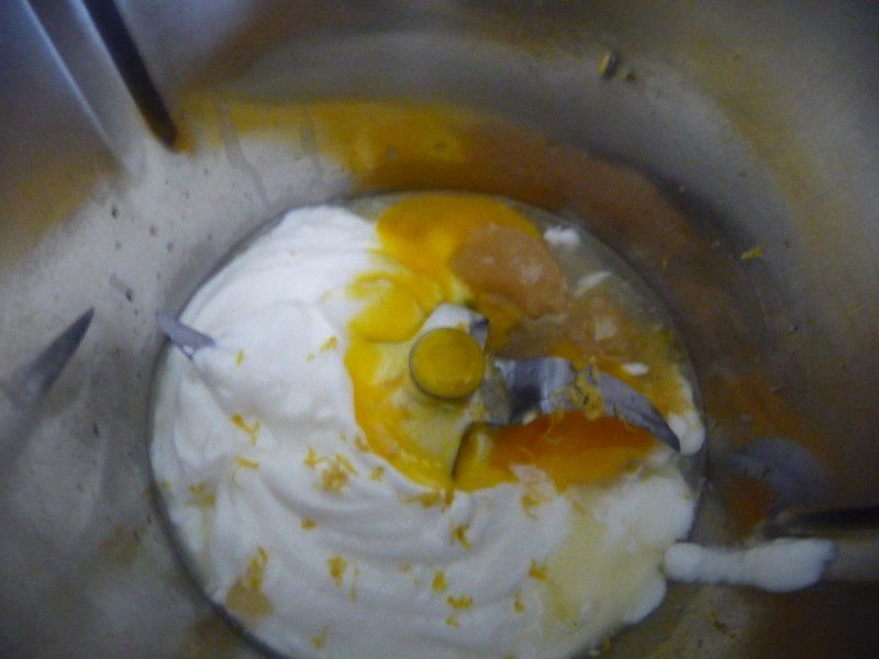 - A la sonnerie, ajouter le jaune d’œuf, le miel, le fromage blanc, le zeste de citron râpé, puis mélanger 30sec/Vit4.