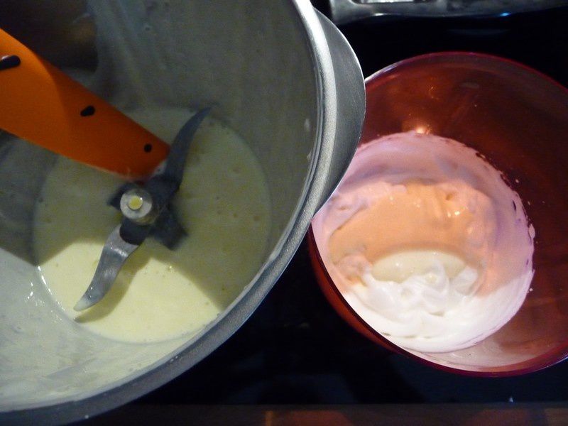 - Séparer le blanc du jaune d’œuf et monter le blanc en neige bien ferme. J’ai utilisé le speddy chef;