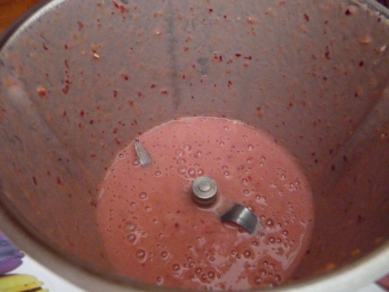 - Ajouter les cerises surgelés, les yaourts et la banane coupée en rondelles et mixer 25sec/Vit6.