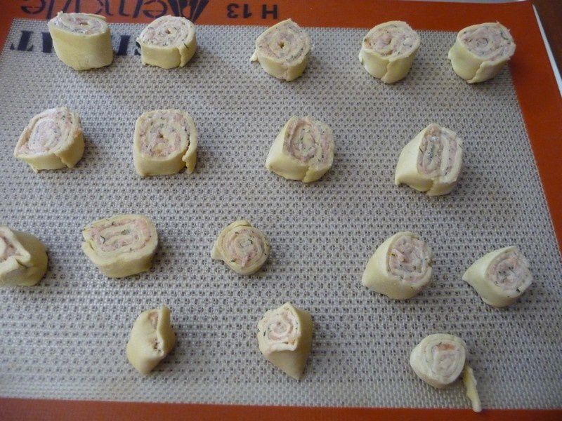 Avec un reste de saumon fumé et de pâte feuilletée je me suis amusée à faire des petits escargots..