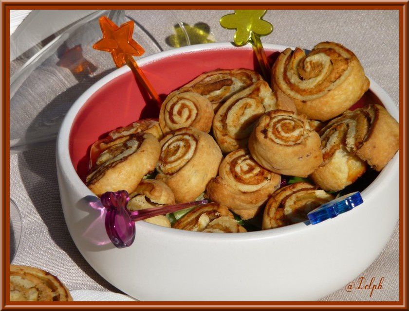 Avec un reste de saumon fumé et de pâte feuilletée je me suis amusée à faire des petits escargots..