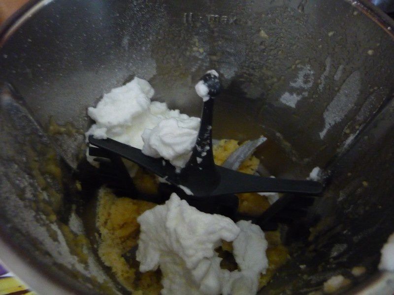 - Mettre dans votre bol le beurre puis faire chauffer 2min30/60°C/Vit2, à la sonnerie ajouter la farine, le sucre la fleur d’oranger et mélanger 15sec/vit4, racler les bords, insérer le fouet et incorporer le blanc en neige puis mélanger 1min/Vit1.