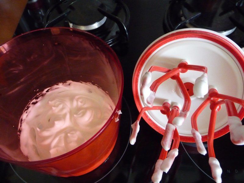 - Monter votre blanc en neige au batteur avec une pincée de sel.