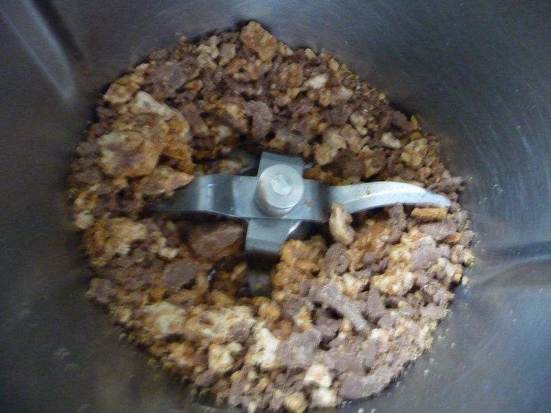 - Mettre les snickers dans le bol du Thermomix puis faire 2 ou 3 pulsions de turbo.