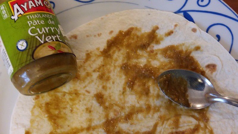 - Pour ceux qui aiment les plats relevés étaler finement la pâte de curry