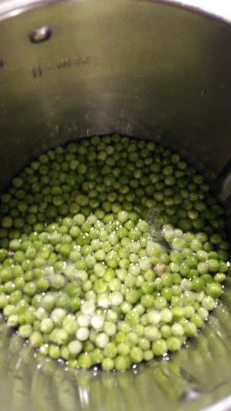- Mettre vos petits pois dans le bol et couvrir d’eau puis faire chauffer 7min/100°C/Vit mijotage/couteau inversé, égoutter vos petits pois et les plonger immédiatement dans de l’eau glacée.