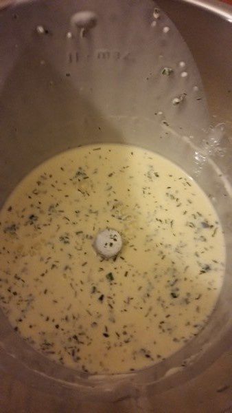 - Préparer l’appareil à clafoutis, mettre les œufs, la fécule, la crème, l’aneth, du sel et du poivre dans le bol et mélanger 30sec/Vit3.