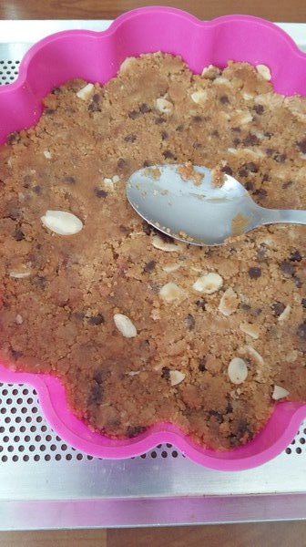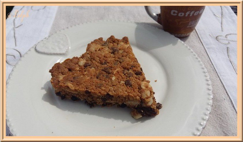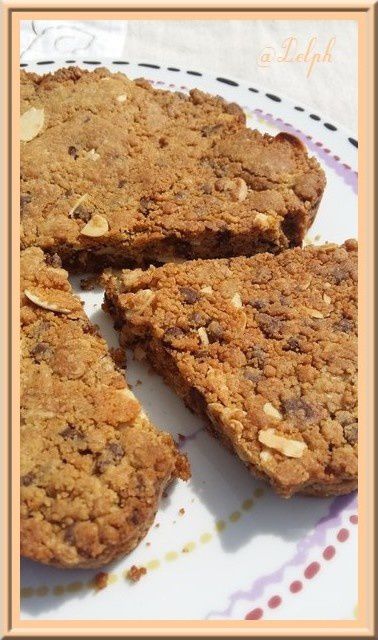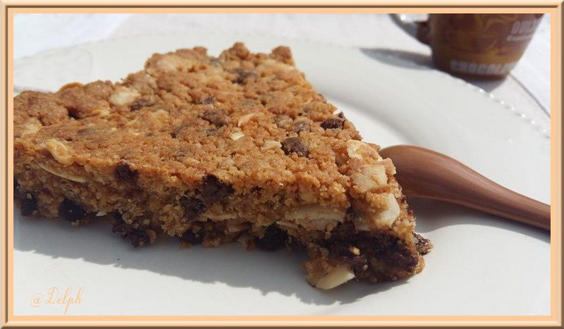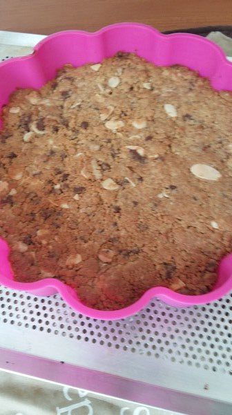 Chrystel proposait des cookies individuels, pour ma part j’ai souhaité en faire un géant … J’ai juste réduit la quantité de cassonade. Merci Chrystel nous nous sommes régalés…