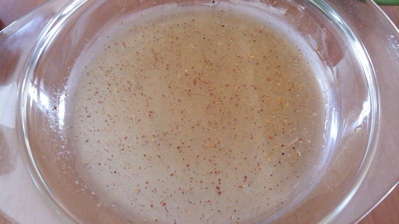 - Dans une grande assiette creuse, mélanger le jus de citron jaune avec le miel liquide. Saler et poivrer généreusement. Ajouter 2 pincées de piment.