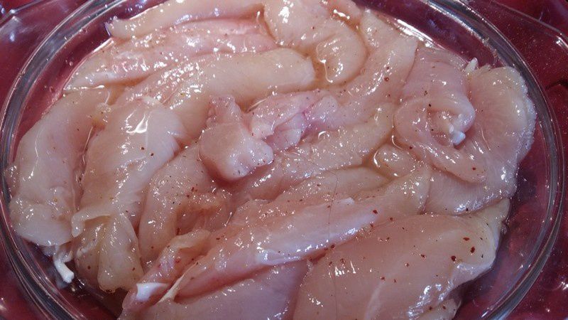 - Mettre vos aiguillettes de poulet dans la préparation et laisser mariner pendant 1 heure.