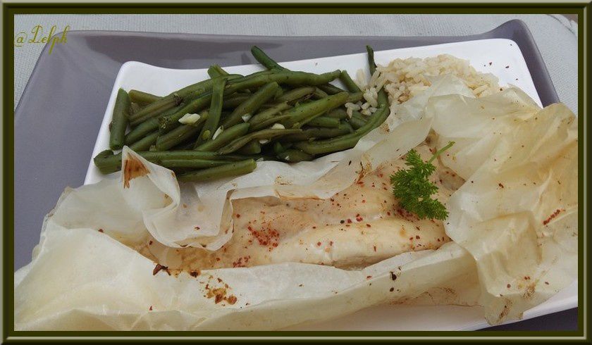 Une petite recette que j’ai trouvée sur le très joli livre « Mes petites papillotes« , livre que ma copinaute Belge, Sabine m’avait envoyé lors de notre Trocolis. C’est un plat très fin et très léger sans matière grasse, extra pour ceux qui font attention à leur ligne, je l’ai accompagné avec des haricots verts et un peu de riz complet.