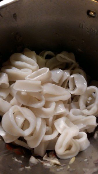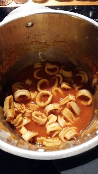 - Mélanger et laisser mijoter jusqu’à ce que la sauce nappe les encornets.