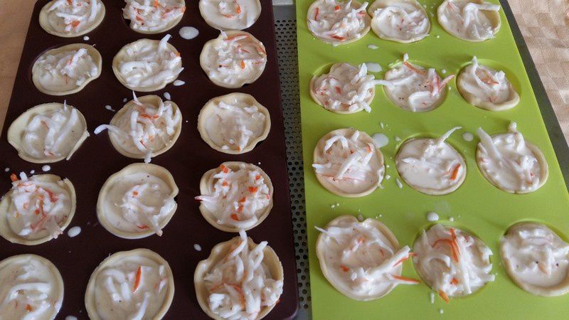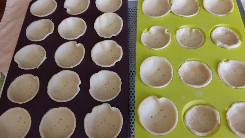 - Garnir vos moules à tartelettes de pâte brisée.