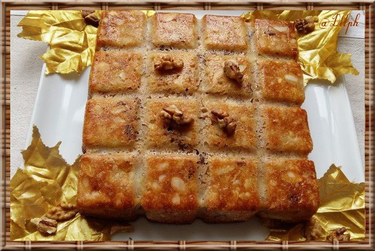 - Dans un saladier, mélanger la farine avec la levure et le sucre puis incorporer les œufs. Ajoutez le beurre préalablement fondu. Mélanger bien puis ajouter les amandes effilées et les cerneaux de noix.