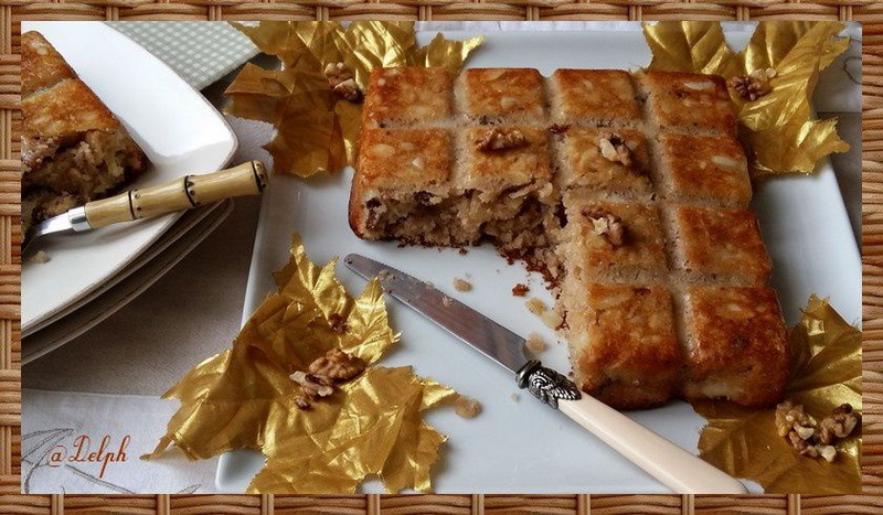 Ce petit gâteau sent bon l’automne en effet ! Pommes et noix un judicieux mariage ! merci ma Delphine ! gros bisous