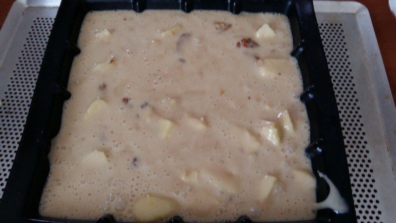 - Beurrer un moule carré ou un moule à cake puis versez-y votre préparation. Enfourner pendant 10 minutes à 140°C puis monter la température à 180°C pendant encore 20 minutes. Vérifier alors la cuisson de votre gâteau et sortez-le du four. Laisser refroidir avant de démouler.
