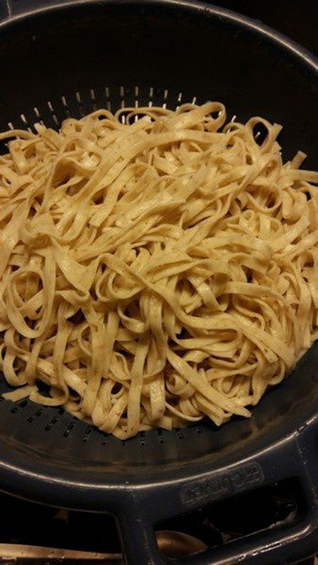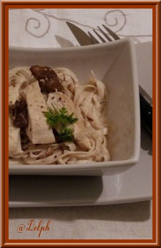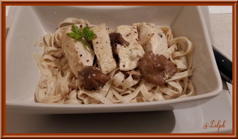 5. Servir la viande nappée de sa crème au cidre, accompagnée des tagliatelles et des petits mousserons.