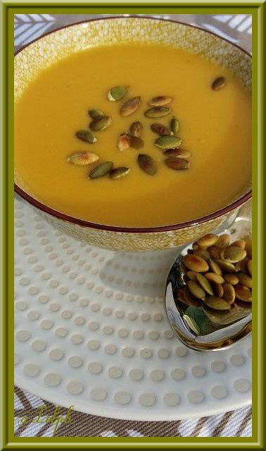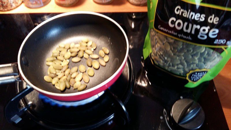 - Torréfier quelques graines de courges dans une casserole à sec, puis disperser sur votre soupe…Régalez-vous.