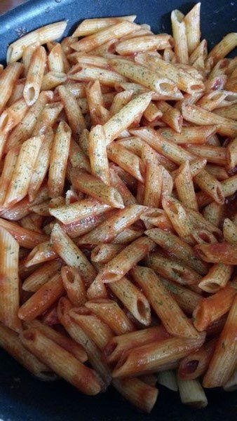 - Porter de l’eau à ébullition et faites-y cuire les pâtes une dizaine de minutes. Égouttez-les puis ajouter le coulis de tomate, saler, poivrer et mélanger.