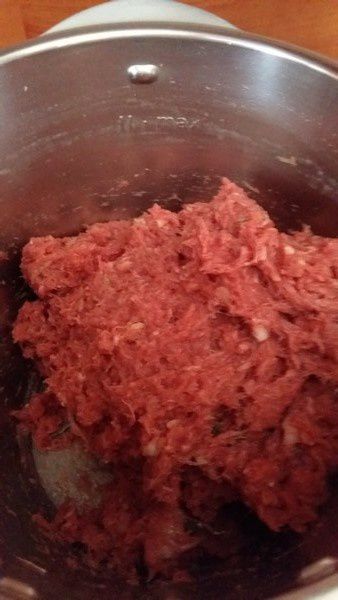 - Mettre l’oignon et le persil dans votre bol puis mixer 5sec/Vit5, ajouter la viande, les œufs, le sel et le poivre puis mixer 30sec/Vit4