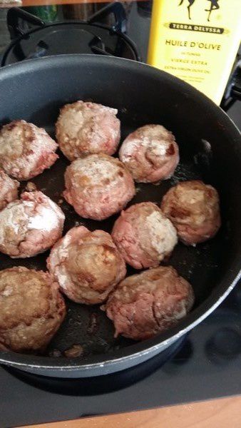 - Rouler chaque boulette obtenue dans la farine puis verser un filet d’huile d’olive dans une poêle bien chaude et cuisez-les une dizaine de minutes. La cuisson se poursuivra au four.
