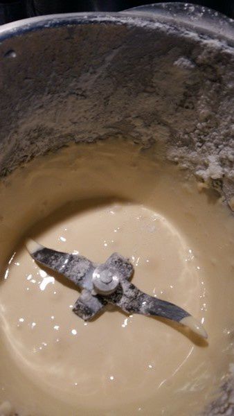 - Enlever le fouet, ajouter la farine et 2 cuillères à soupe de blancs montés en neige.Mixer 30 sec/ vit5.
