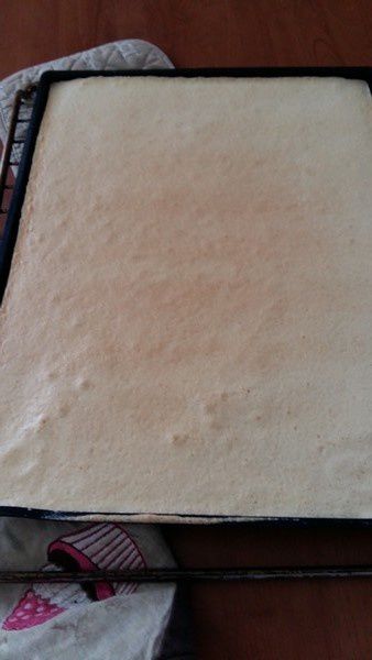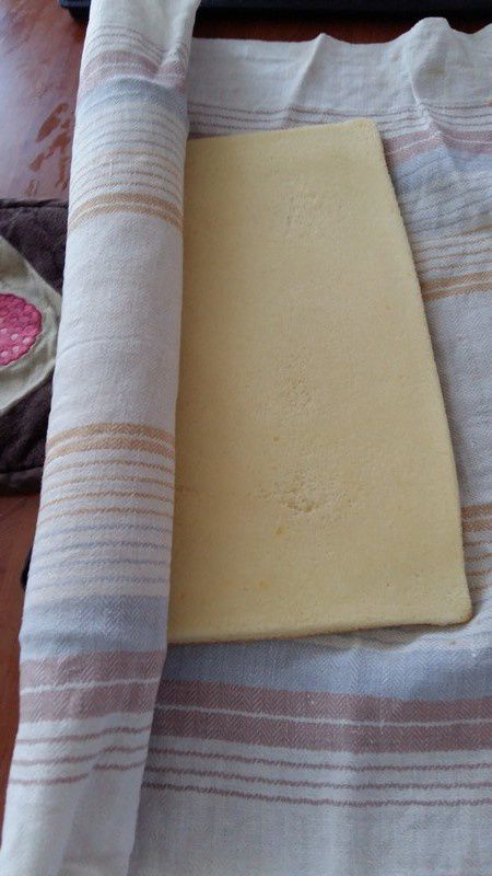 - Retourner la génoise sur un torchon propre , enlever votre moule et rouler aussitôt. mettre au frais