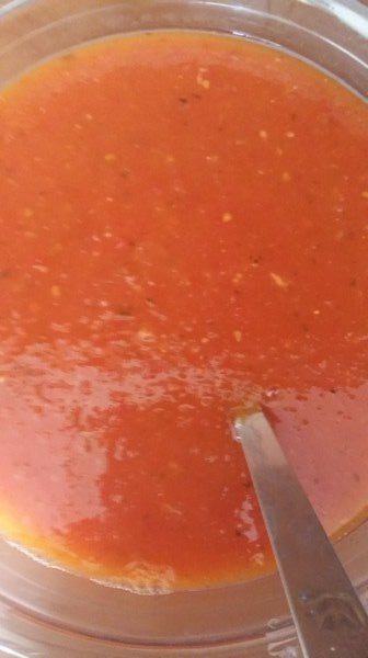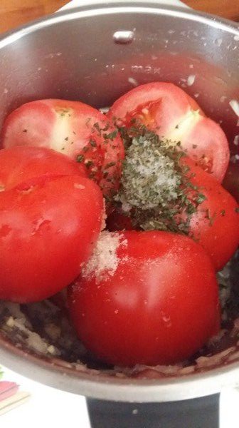 - Ajouter les tomates coupées en deux, le basilic, l’eau et 1 cuillère à café de sel mixer 10sec/vit8