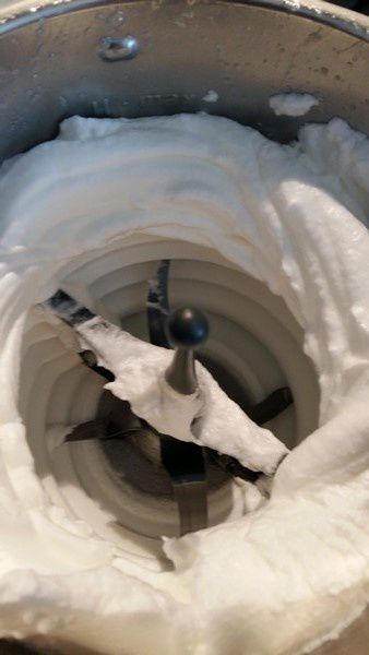 - Battre la crème bien froide en chantilly pas trop ferme à l’aide d’un robot.