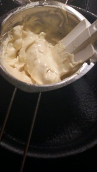 - En parallèle, faites fondre les 180 gr de chocolat blanc au bain marie.