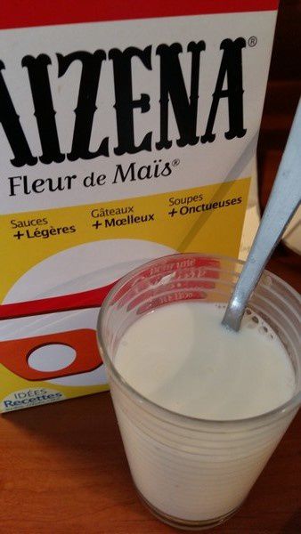 - 1 verre de lait soit environ 200 ml + 1 bonne c à s de maïzena