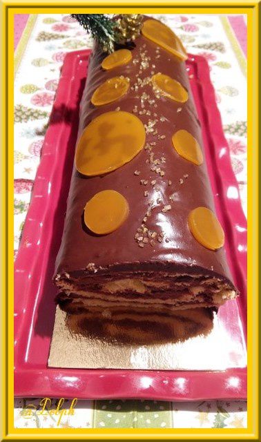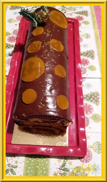 - Le glaçage doit être utilisé tiède, entre 35° et 40°C, et versez-le à la louche sur la bûche, laisser s’écouler l’excédent en tapotant la grille. Déposer la bûche sur un plat.