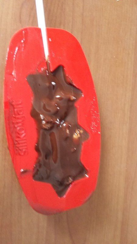 - Faire fondre le chocolat sur feu doux, le verser dans les moules, puis laisser durcir au frais.