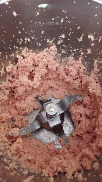 - Dans le bol, mettre les Knackis coupées en morceaux et le gruyère râpé et mixer 10 sec/ vit 6.
