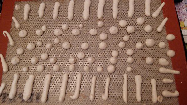 - Mettre votre meringue dans une poche à douille, et pocher vos meringues à votre goût.