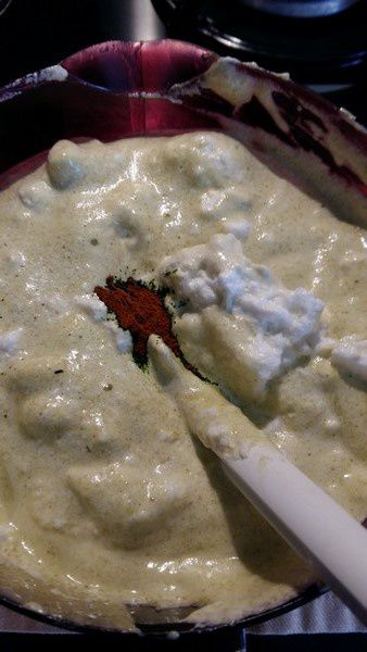 - Ajouter la gélatine essorée, passer au mixeur plongeant.