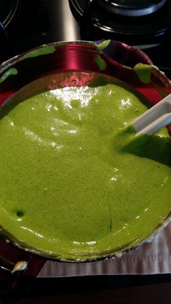 - Faire chauffer le lait dans une casserole jusqu’à ébullition, incorporer la pistache dans le lait et remuer.