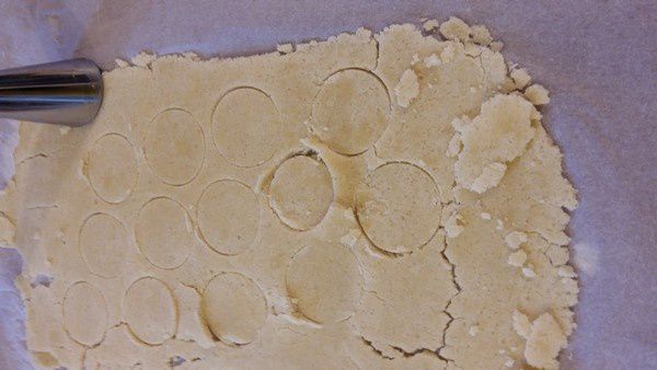 - Sortir le craquelin de votre frigidaire puis à l’aide d’un emporte pièce rond, faire des cercles (plus grand que le chou) et les placer sur chaque chou, en appuyant un peu.