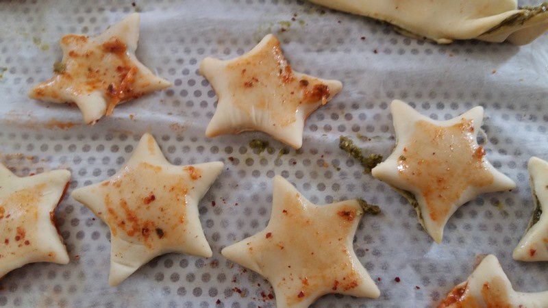 Sapin feuilleté au Pesto, et sauce Aubergine poivron