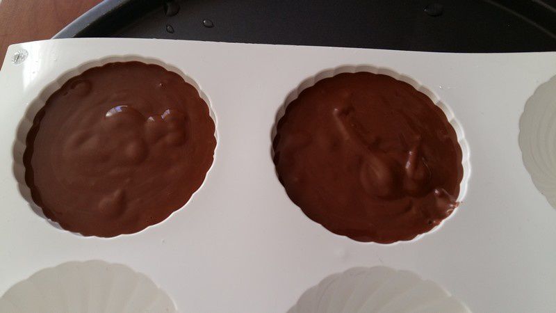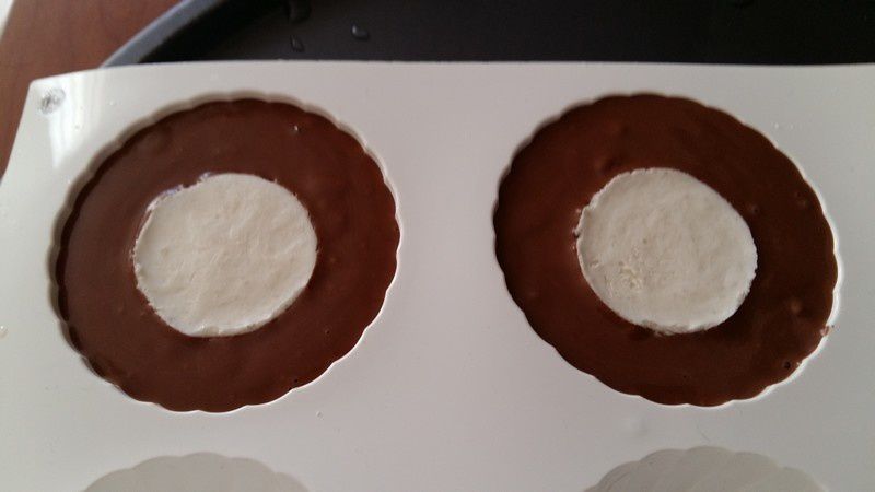 4. Mettre votre préparation dans vos dômes, puis placer votre insert à la noix de coco congelé au milieu.