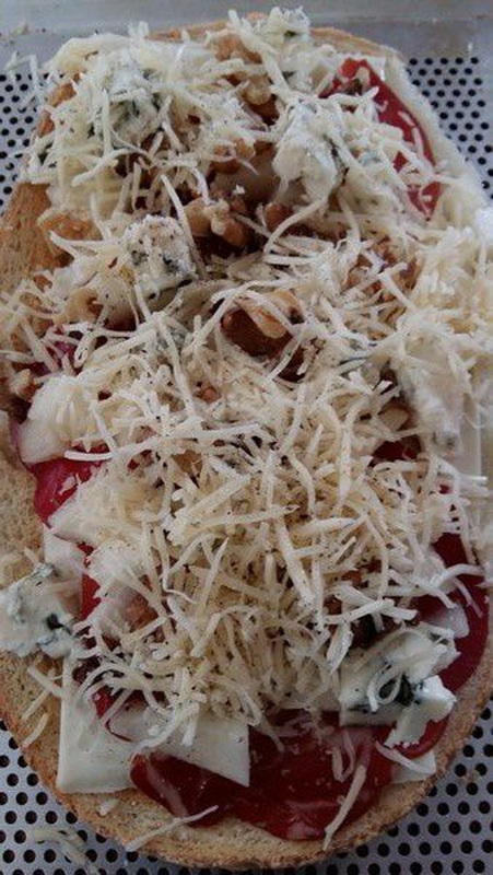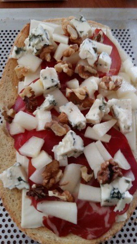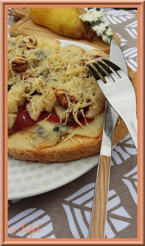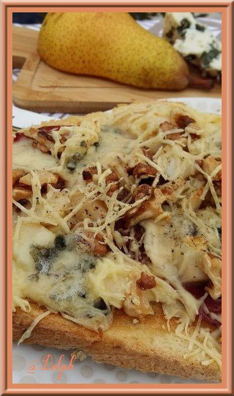 Toujours dans ma folie des tartines, j’ai testé celle-ci en alliant roquefort et poire, et bien j’apprécie beaucoup cette alliance de saveurs.