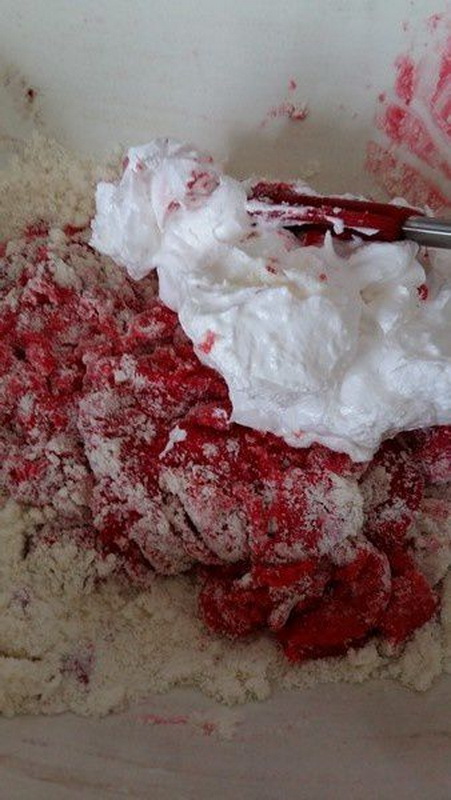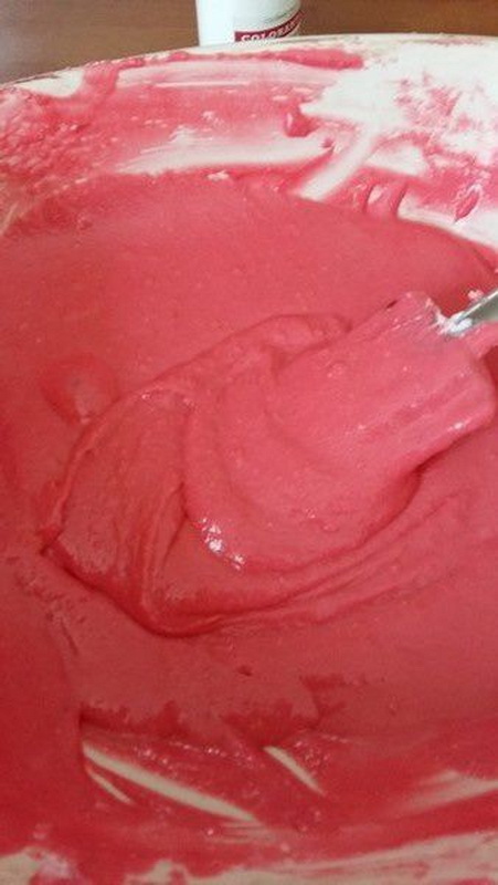 - Dans votre saladier de poudre d’amande et sucre glace mettre 80 g de blanc d’œuf et une pointe de colorant alimentaire, mélanger, la masse est un peu dure, mettre un peu de blanc en neige, tourner, puis tout mettre puis mélanger les 2 masses, puis macaronner assez vite, attention cette étape est fondamentale, arrêter de macaronner quand vous obtenez un ruban. La pâte tombe en ruban quand vous la levez.