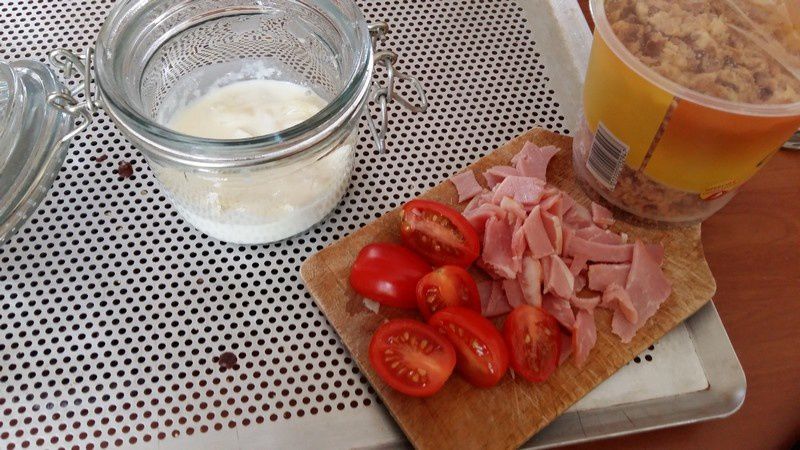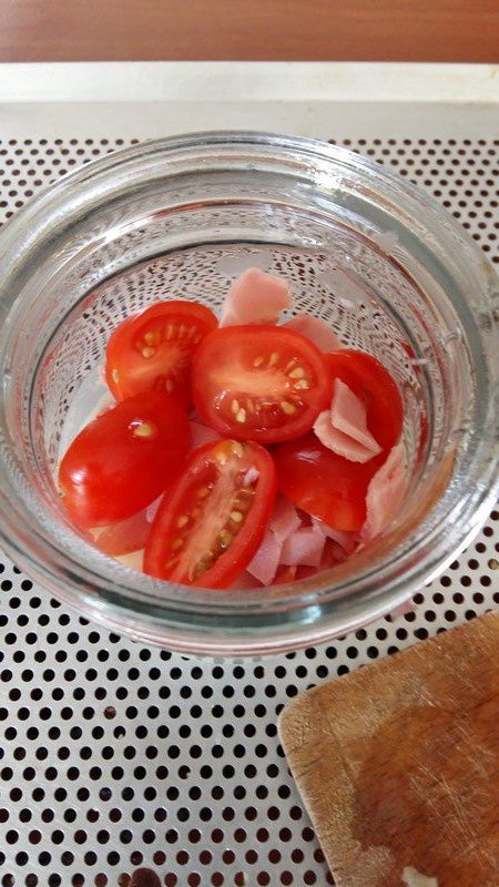 - Couper le bacon en petits dés, les tomates cerises en 2.