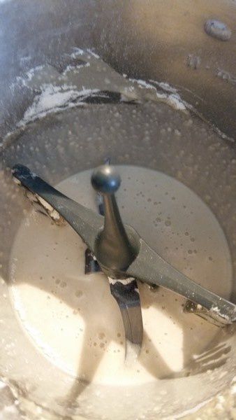 - Faire fondre le beurre dans une casserole jusqu’à obtenir une couleur noisette, ajouter le beurre à la préparation, utiliser une petite passoire pour enlever toutes les impuretés du beurre, puis mélanger 15sec/vit 3 toujours avec le fouet.