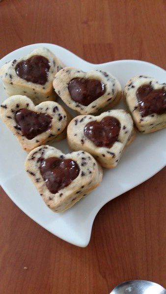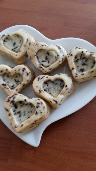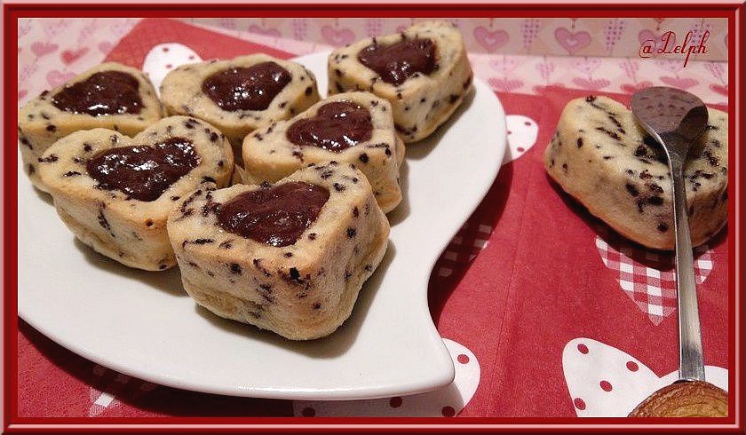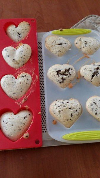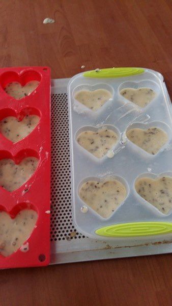 - Verser la pâte dans des petites empreintes. J’ai utilisé mon moule cœur avec une bosse dans le fond pour pouvoir mettre la ganache.