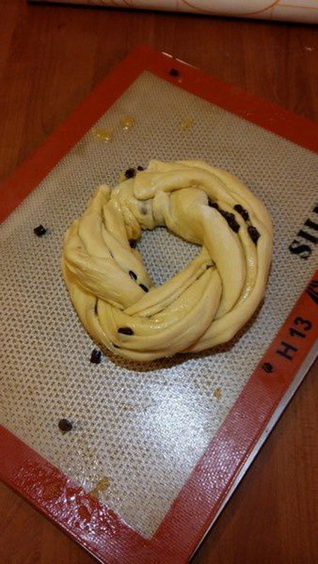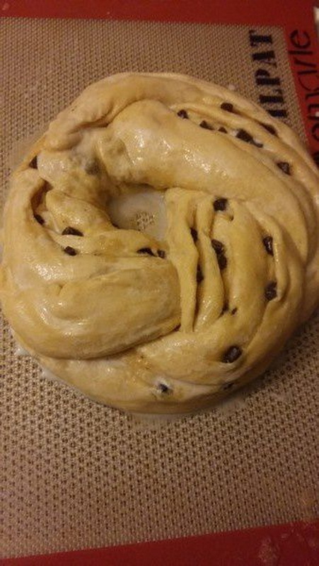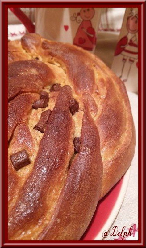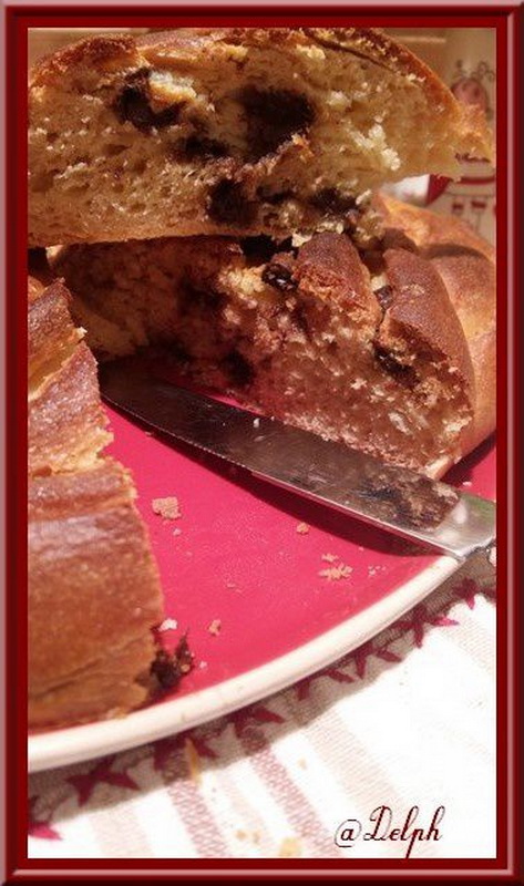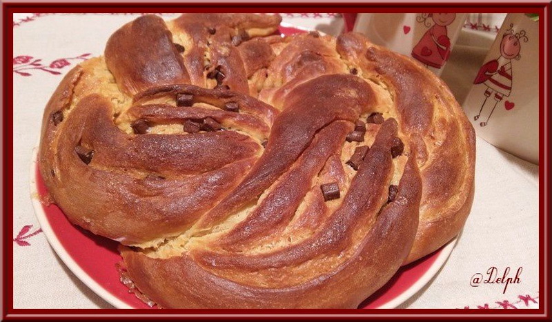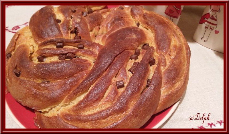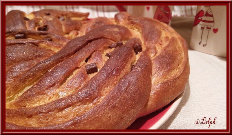 Cette brioche est un régal, mais malheureusement à la cuisson elle s’est un peu aplatie, je vous la montre quand même.