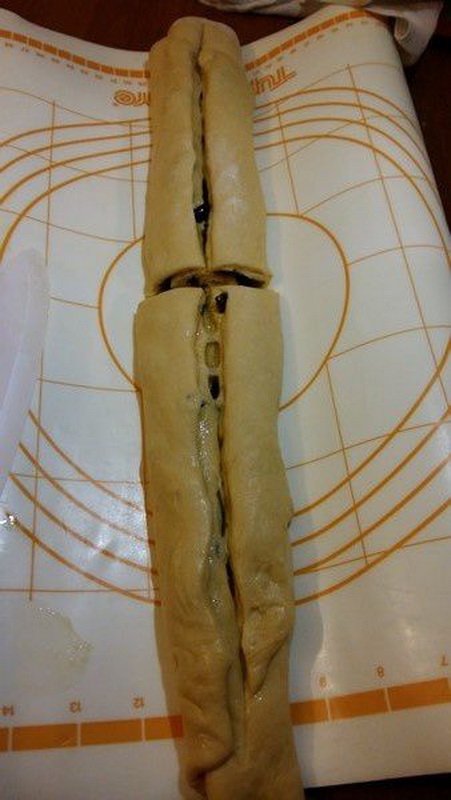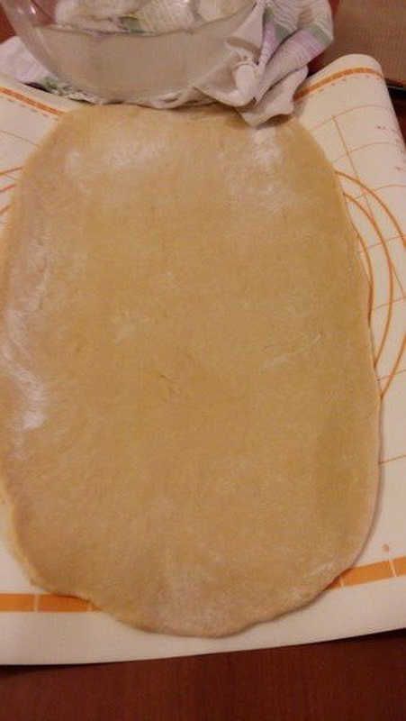 - Dégazer la pâte, abaisser la pâte en rectangle.