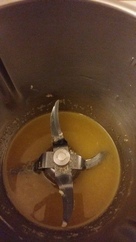 - Préparer la garniture, mettre dans le bol du Thermomix le beurre et le sucre puis mélanger 5min/60°C/Vit mijotage.
