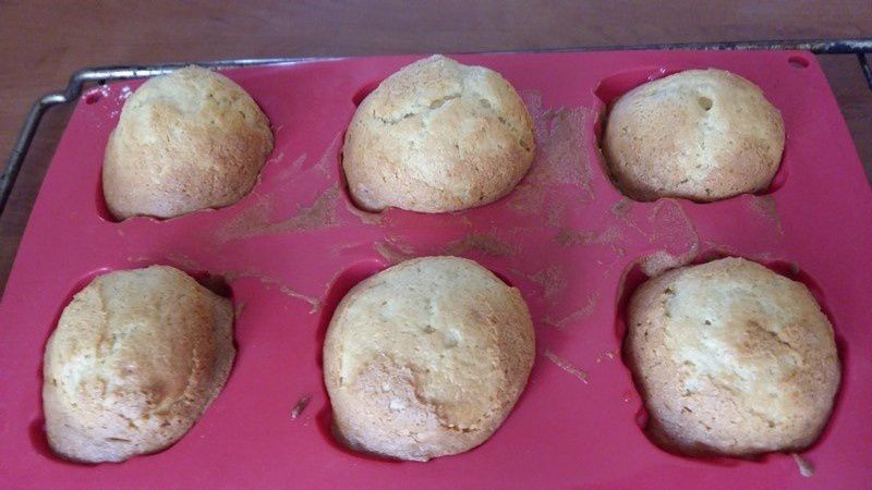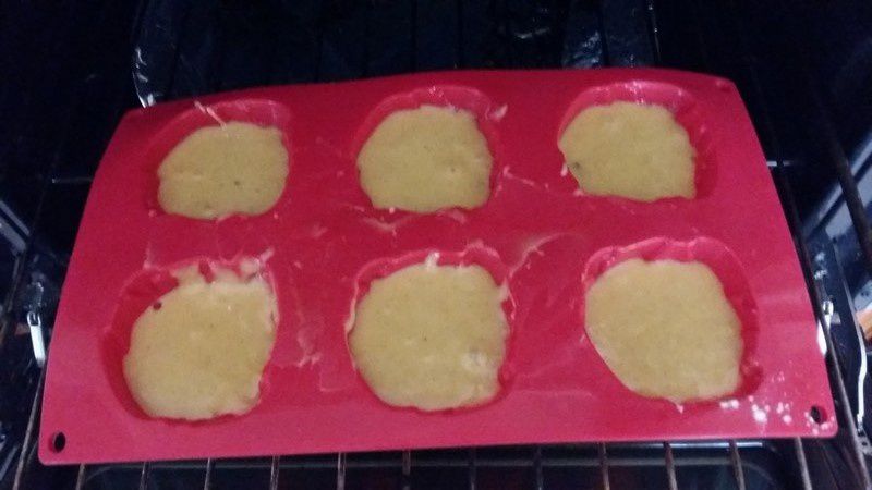 - Verser dans les empreintes fleurs bien beurrées ( j’utilise mon spray) , puis mettre au four chaud pendant 20 min.
